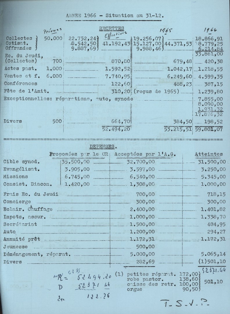 Association cultuelle de l'Église réformée évangélique de Port-Ste-Foy, liste des membres, cotisations, budgets : 1925, 1926, 1928, 1929, 1942, 1945, 1947