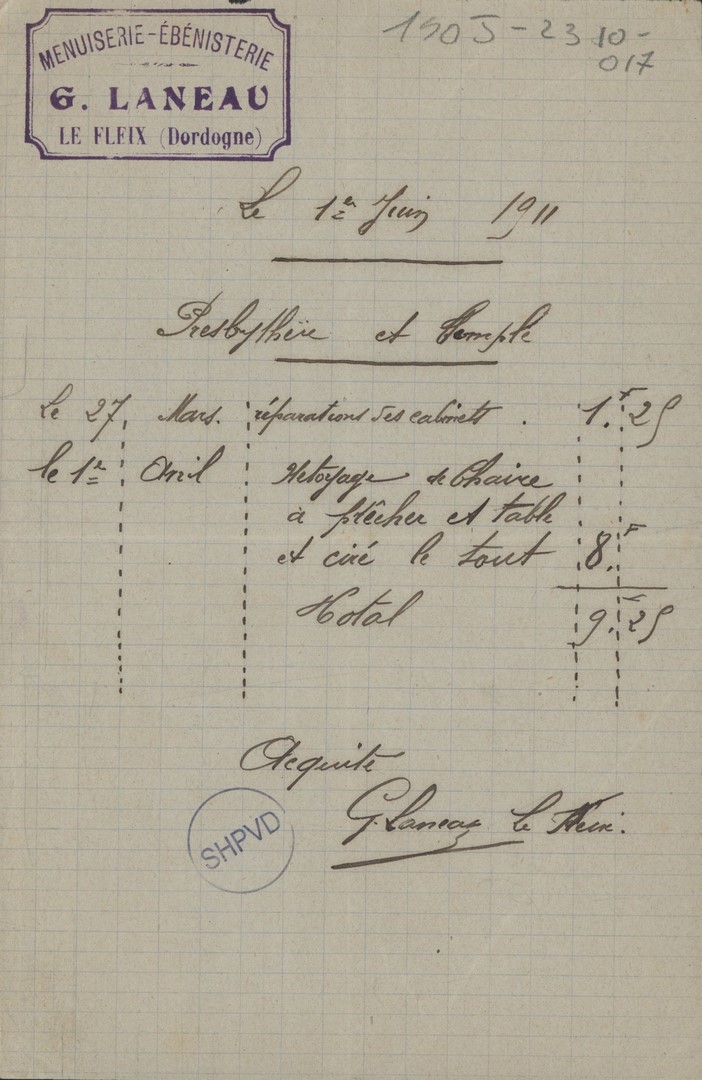 Cote du fonds: 140J - Fonds: LE FLEIX 19-20èmes siècles - Nombre de documents: 138