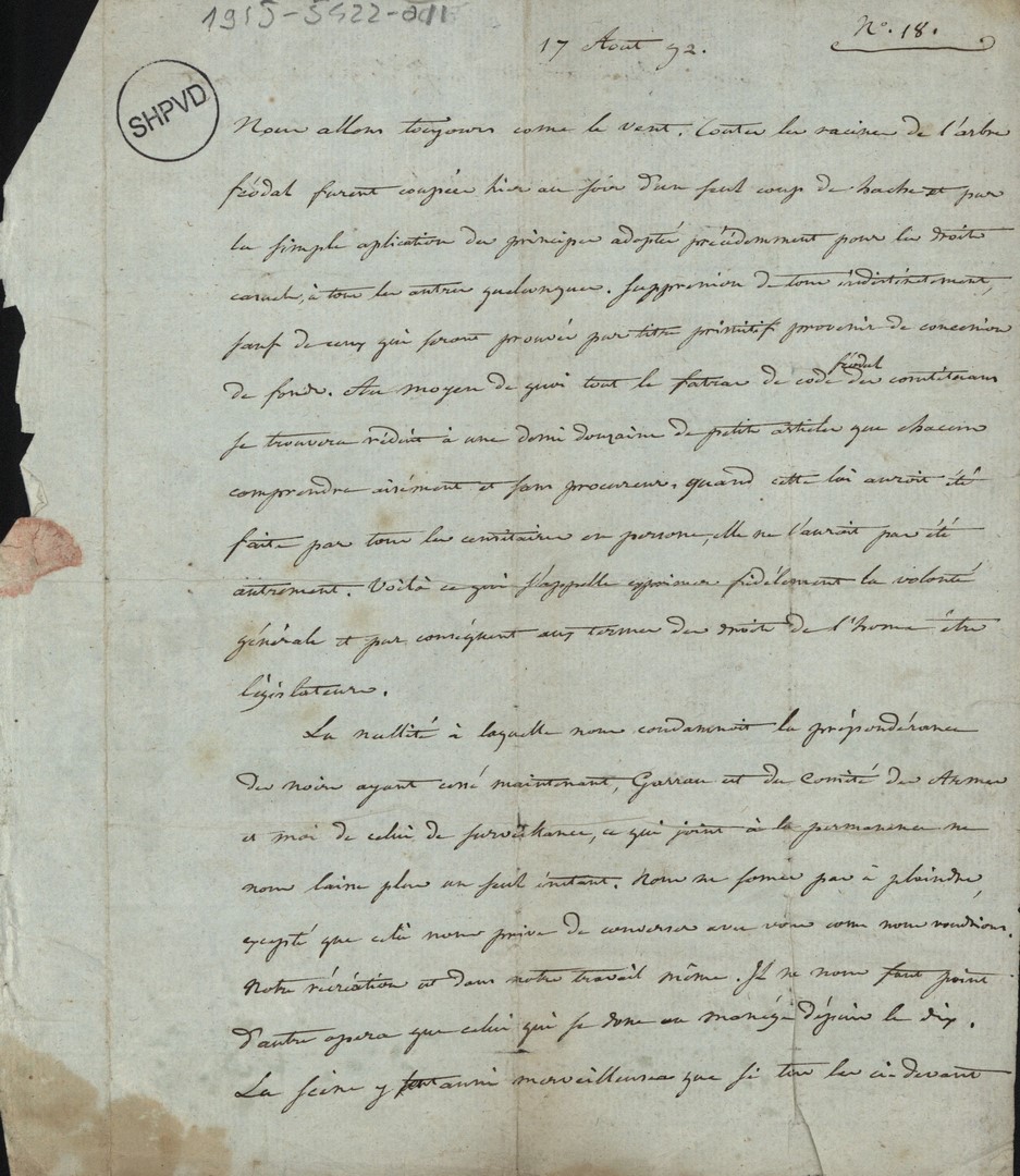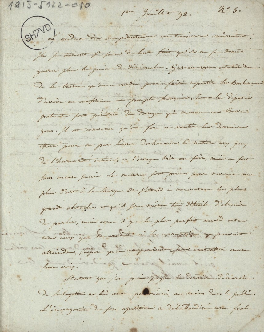 Cote du document: SHPVD-BN-191J-5422-009-00-00-00Lettre-attestation concernant M. Duchatel, certifiant qu’il n’est pas noble