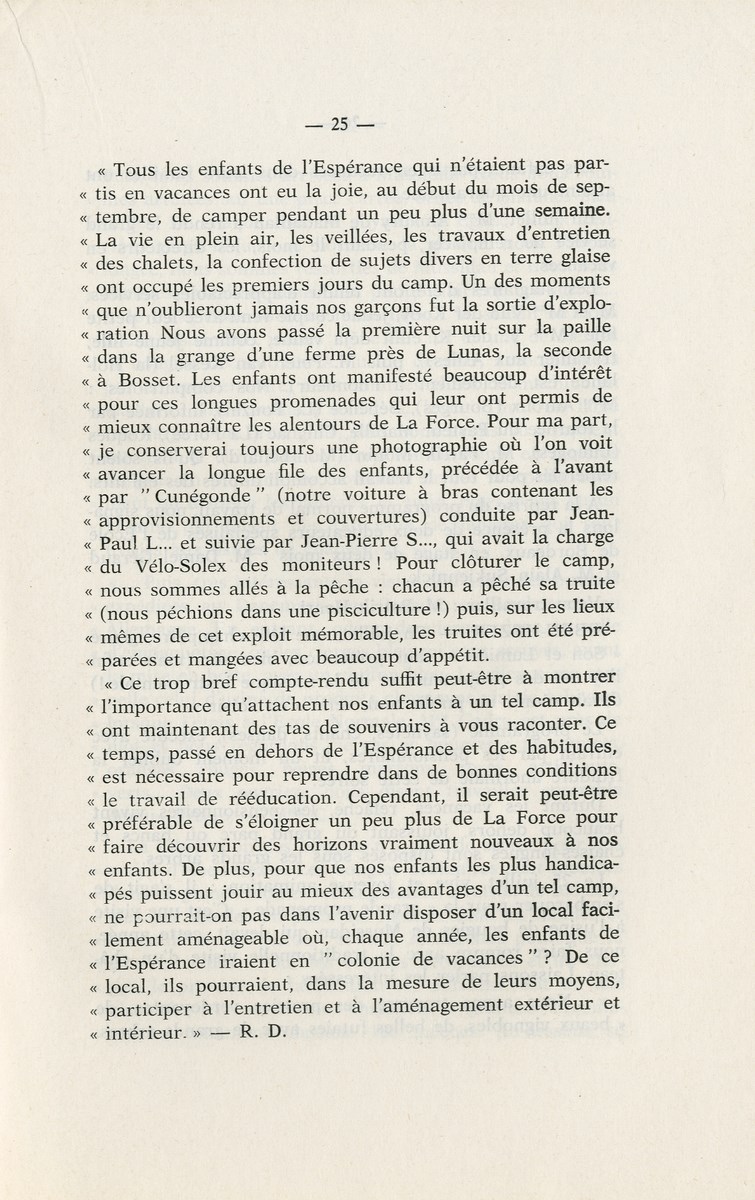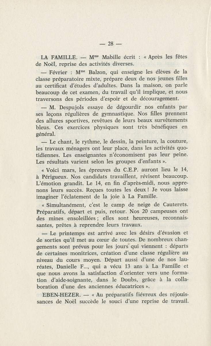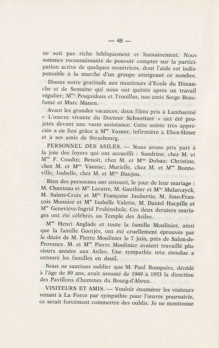 Nouvelles des pavillons A l'Attente, Un groupe de monitrices a été élu pour véiller à la bonne marche de la maison une piscine scoutisme un camp de La Famille à la petite prairie 15 jours de camp pour la nouvelle meute de louveteaux de l'Espérance camp de 1 mois pour les éclaireurs avec explo et feu de camp un voyage pour les pensionnaires de Eben Hezer M. Paul Moulinier Directeur adjoint au Bourg d'Abren Un groupe de Routiers au BA le Clan Champlain