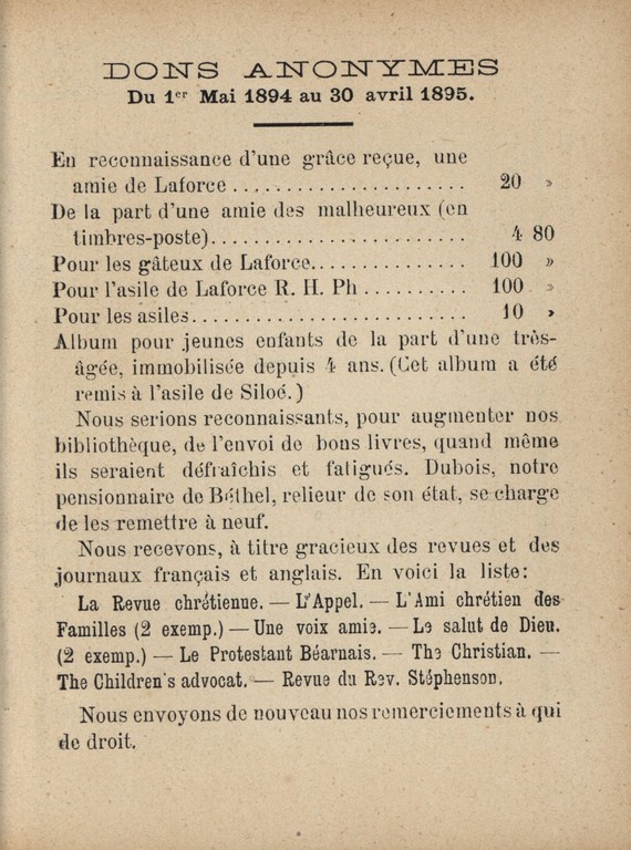 Cote du fonds: 400H - Fonds: Fondation John Bost, rapports annuels, documents généraux - Nombre de documents: 504