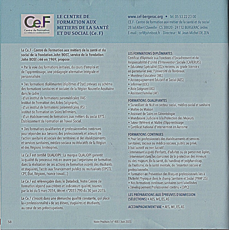 NOTRE PROCHAIN N° 400 année 2025 Première de couverture.