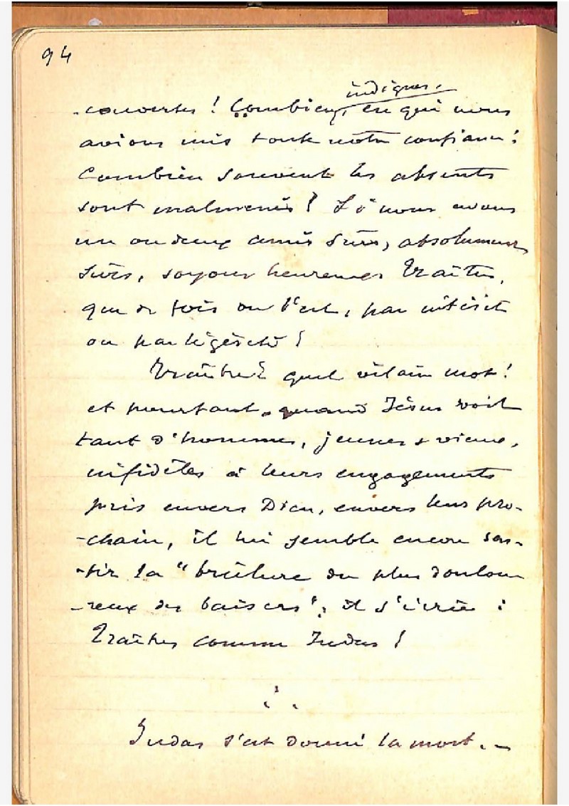 Ernest Rayroux, carnet N°48, notes pour méditations, du 17 octobre 1897, une table des matières se trouve à la fin du carnet